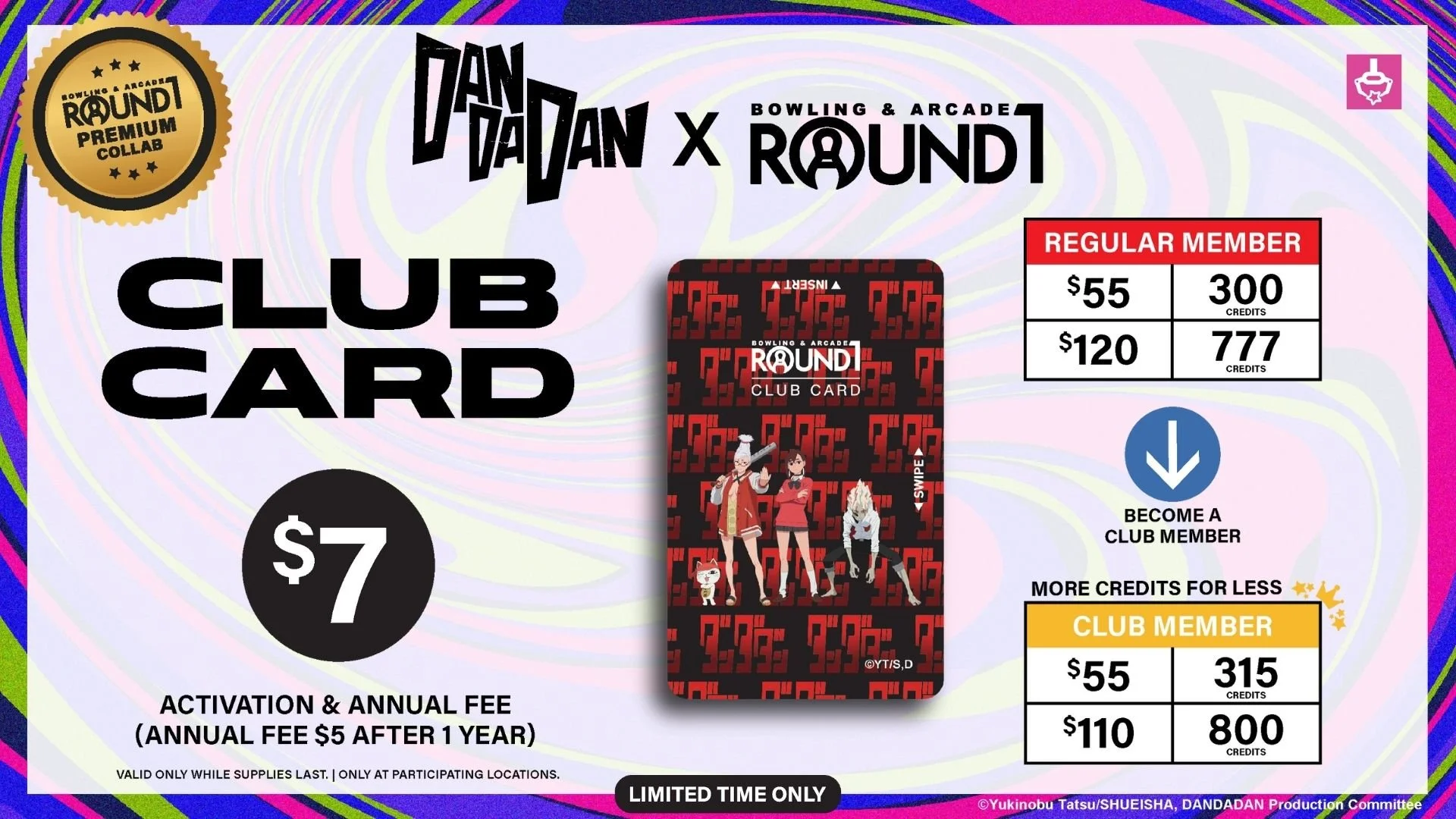 Aliens, Ghosts, and all the Round1 fun you love! DAN DA DAN x Round1 is here! Team up with Okarun and Momo to snag premium collaboration items now available at all Round1USA locations!